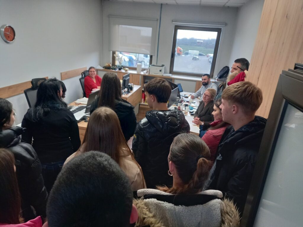 Затим су млади посетили компанију ДИС у Крњеву, где су их дочекали запослени у сектору финансија и ИТ. Представили су младима поступан развој каријере у њиховој компанији и дискутовали о пословима које обављају. Млади су имали прилику да обиђу све секторе ове компаније и погледају процес рада у комерцијали, финaнсијама и посебно ИТ, где су упознали како функционише комплетан систем ове компаније.